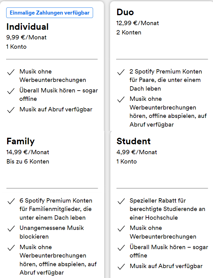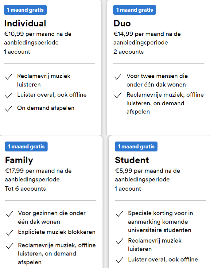 Sinds gisteren zijn de nieuwe tarieven van Spotify ingegaan. Het ziet er voor Nederland en België nu zo uit: