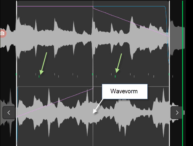 Let dan op de smalle dunne groene streepjes, die geven de eerste tel van de maat aan. Zorg dat deze exact boven elkaar staan, anders loopt de overgang uit de maat. Ik zal niet uitleggen wat al de verschillende mogelijkheden zoals Center Bass Swap, 3 band fade, High pass filter in etc. precies inhouden. Dat leer je sneller door gewoon wat te experimenteren. Elke keer als je een aanpassing doet speelt Spotify de overgang opnieuw af, dus dat heb je zo door.